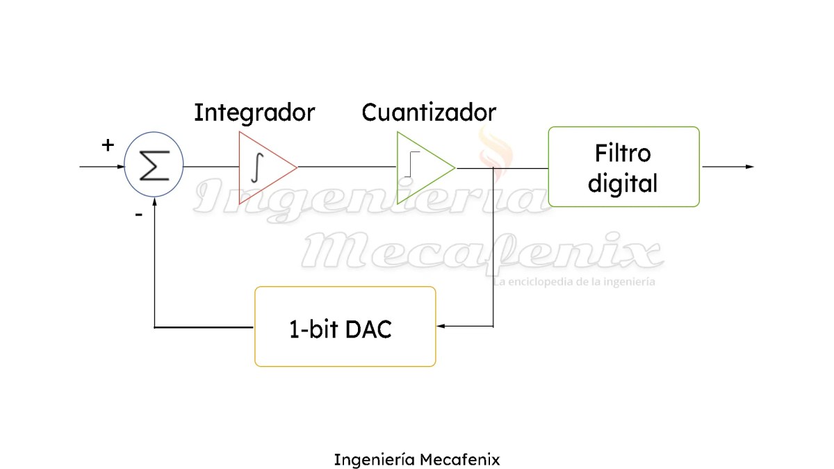 Este tipo de convertidor se caracteriza por tener un solo bit de resolución, una alta cantidad de muestro y una baja frecuencia, es decir; que este tipo de adc tiene una gran resolución pero es de los más lentos que existen. Se utiliza en aplicaciones que requieren una muy alta resolución y una baja velocidad, como por ejemplo en el audio.