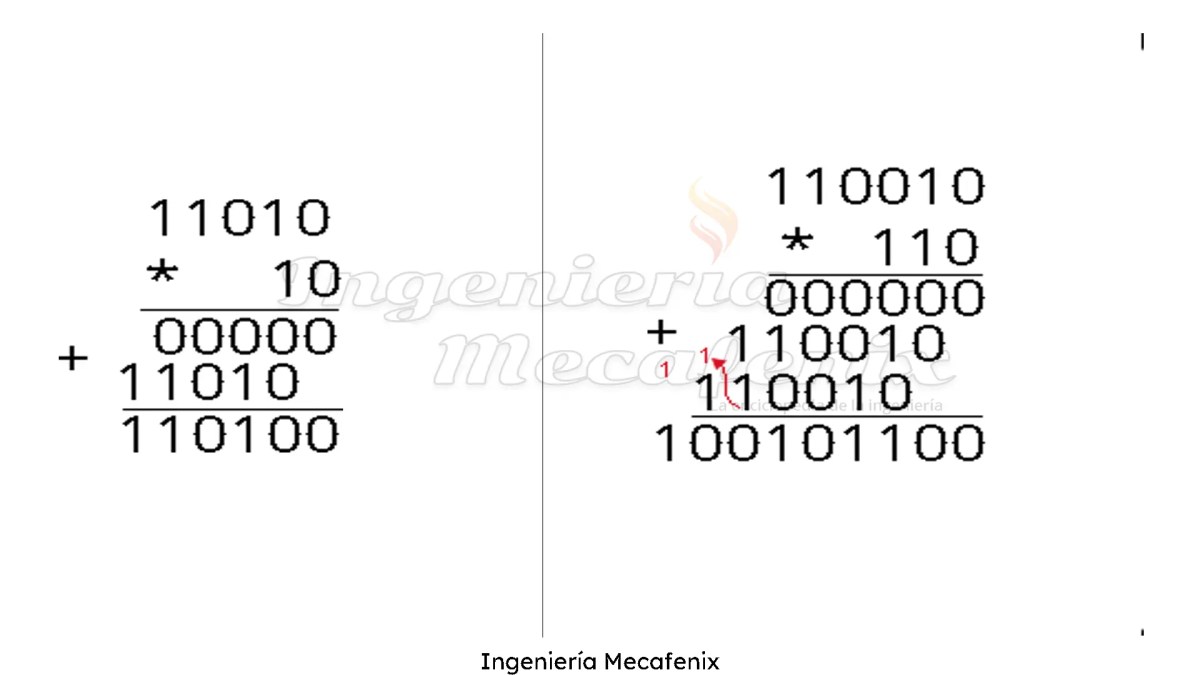 1 + 1 = 0, con acarreo de 1 en la siguiente fila