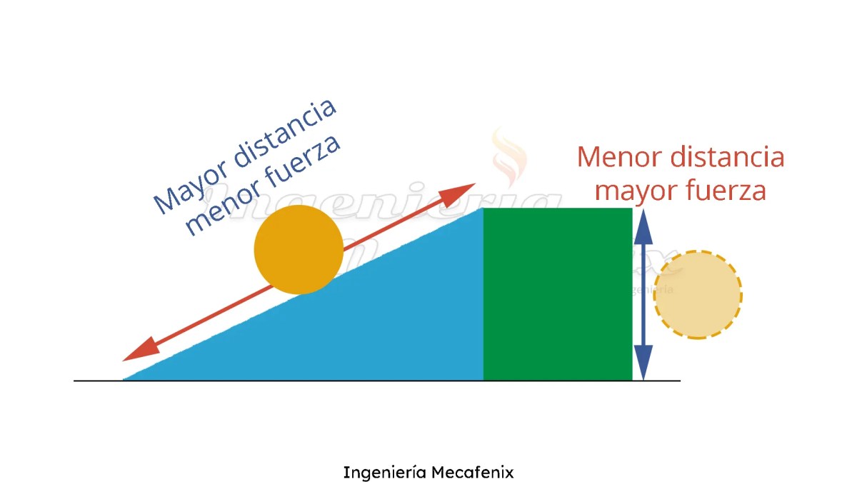 - Pero si en vez de levantarla directamente ponemos un plano inclinado utilizamos una fuerza menor pero en mayor distancia.